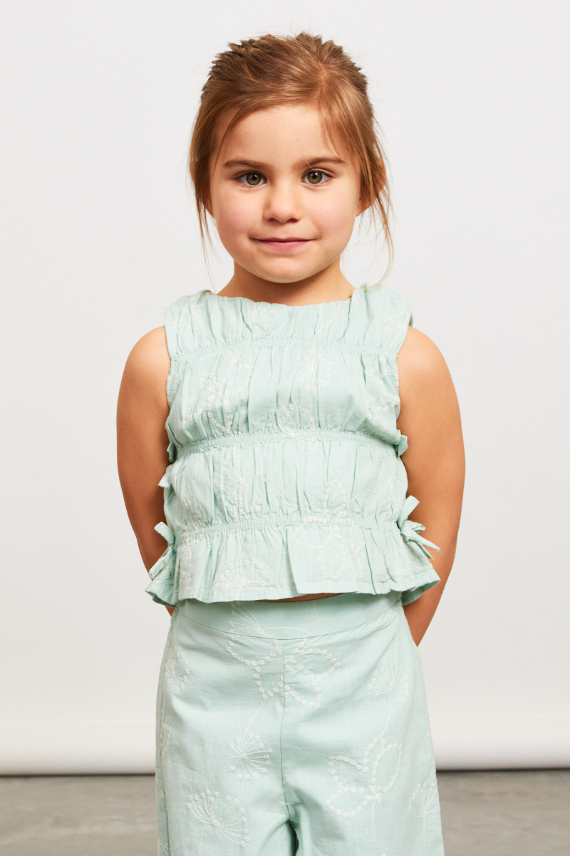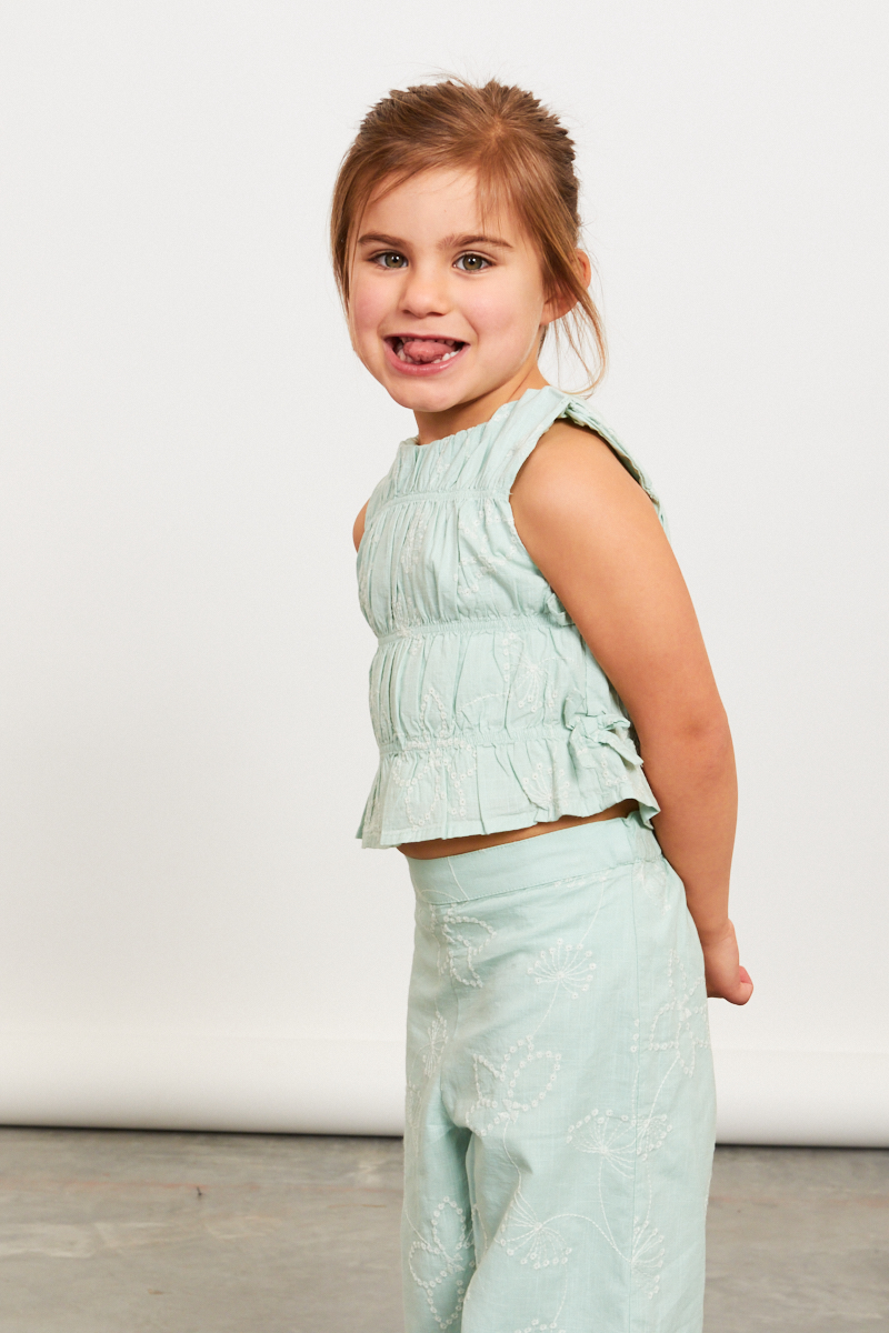 Completo 2 pezzi con canotta e pantaloni ricamati 100% cotone