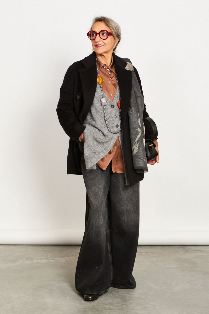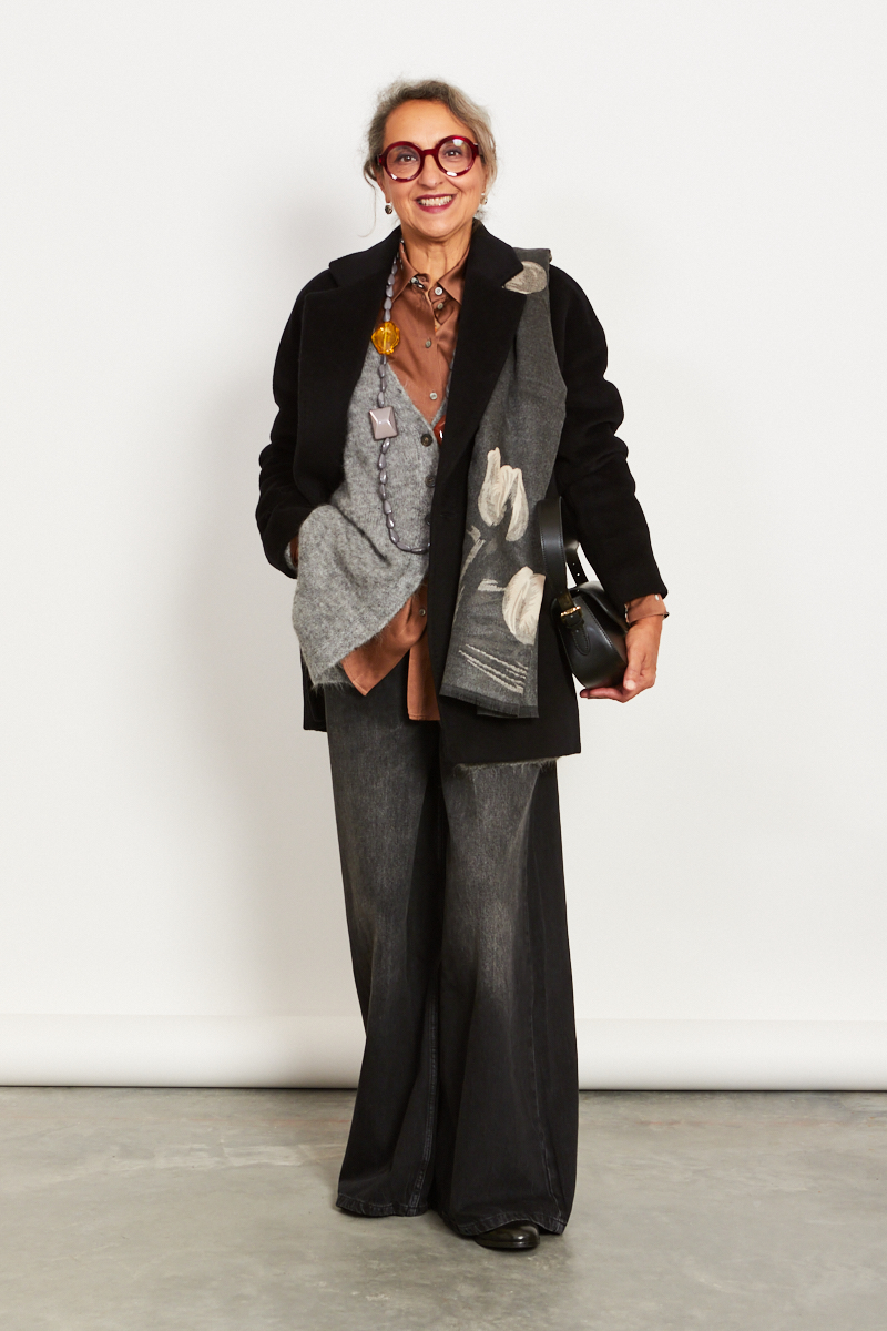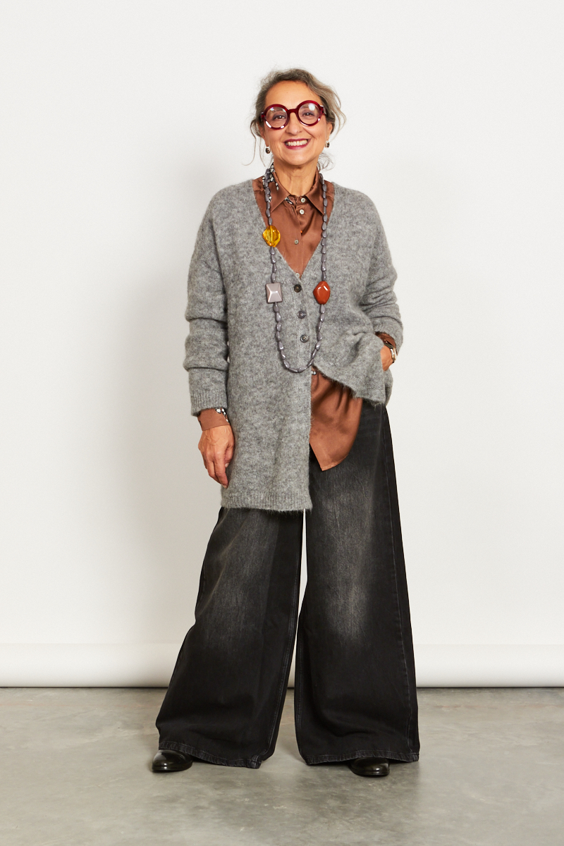Look casual e versatile con jeans a gamba larga leggermente over size, outfit perfetto per le giornate in città ( jeans, camicia Otto D’Ame )