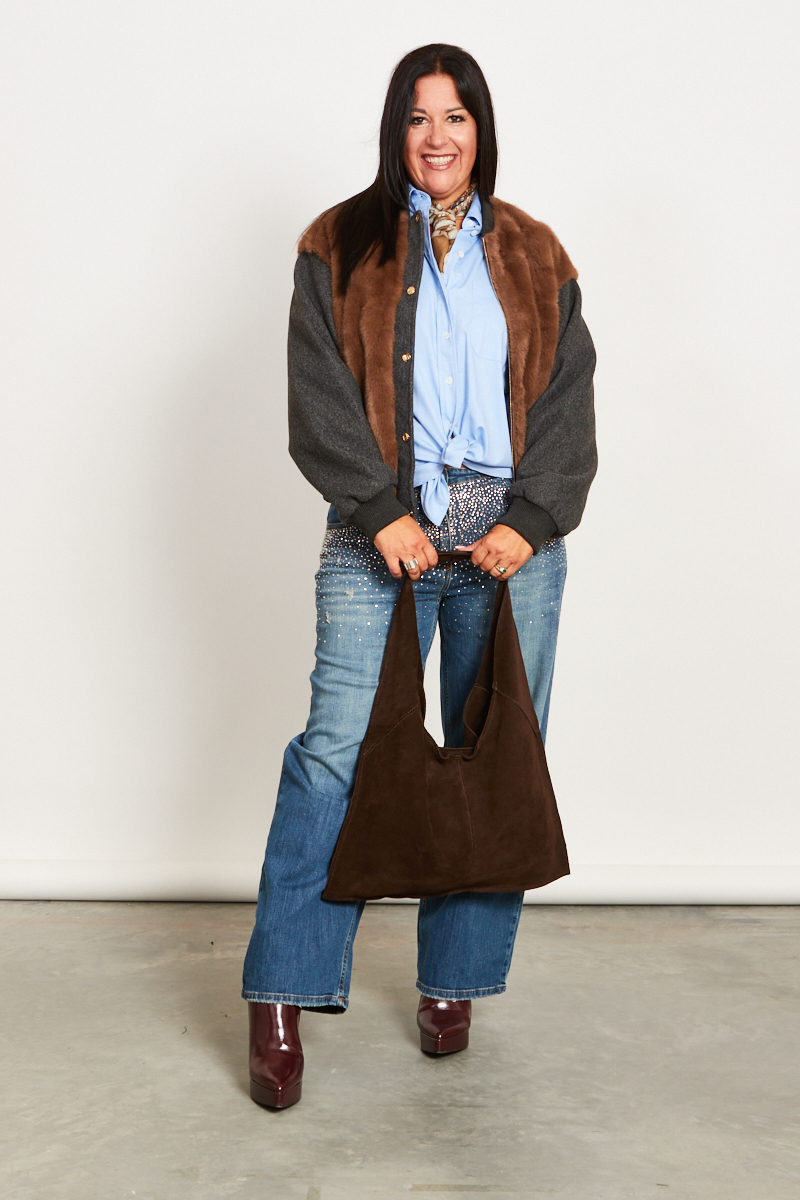 Look Denim Glam….. con jeans impreziositi da strass, perfetto per uscite serali informali e appuntamenti in città ( jeans Siste’s )