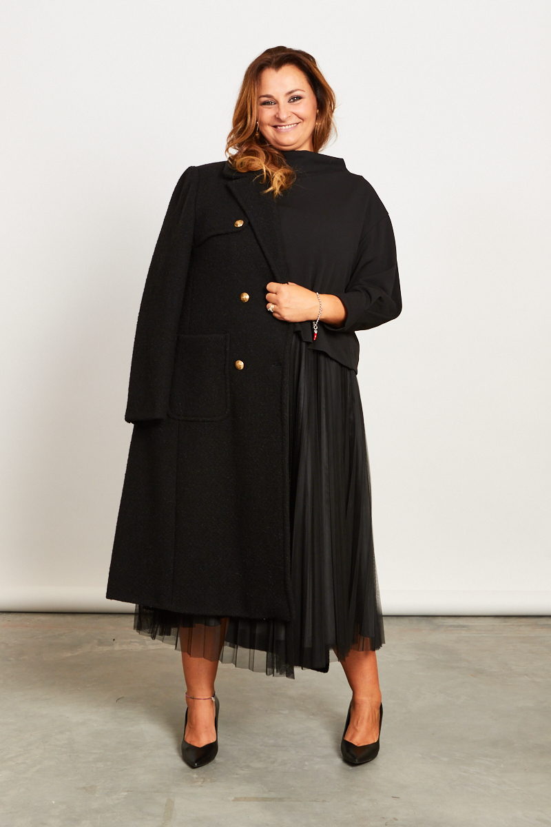 Home » Lookbooks » Lookbook donna » Look stratificato e romantico, ideale per una cena romantica o una giornata invernale chic ( abito Sandra Ferrone )