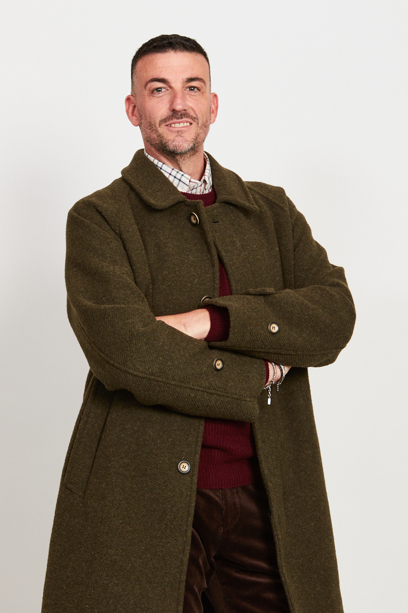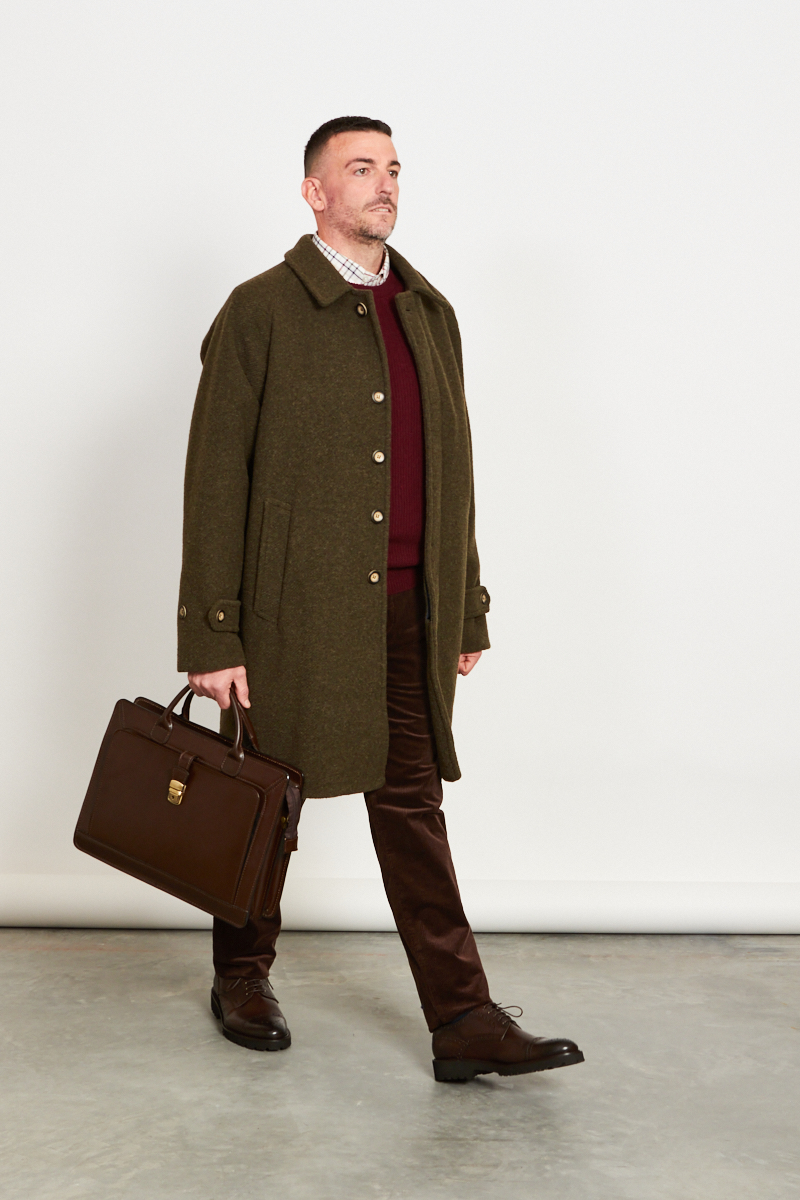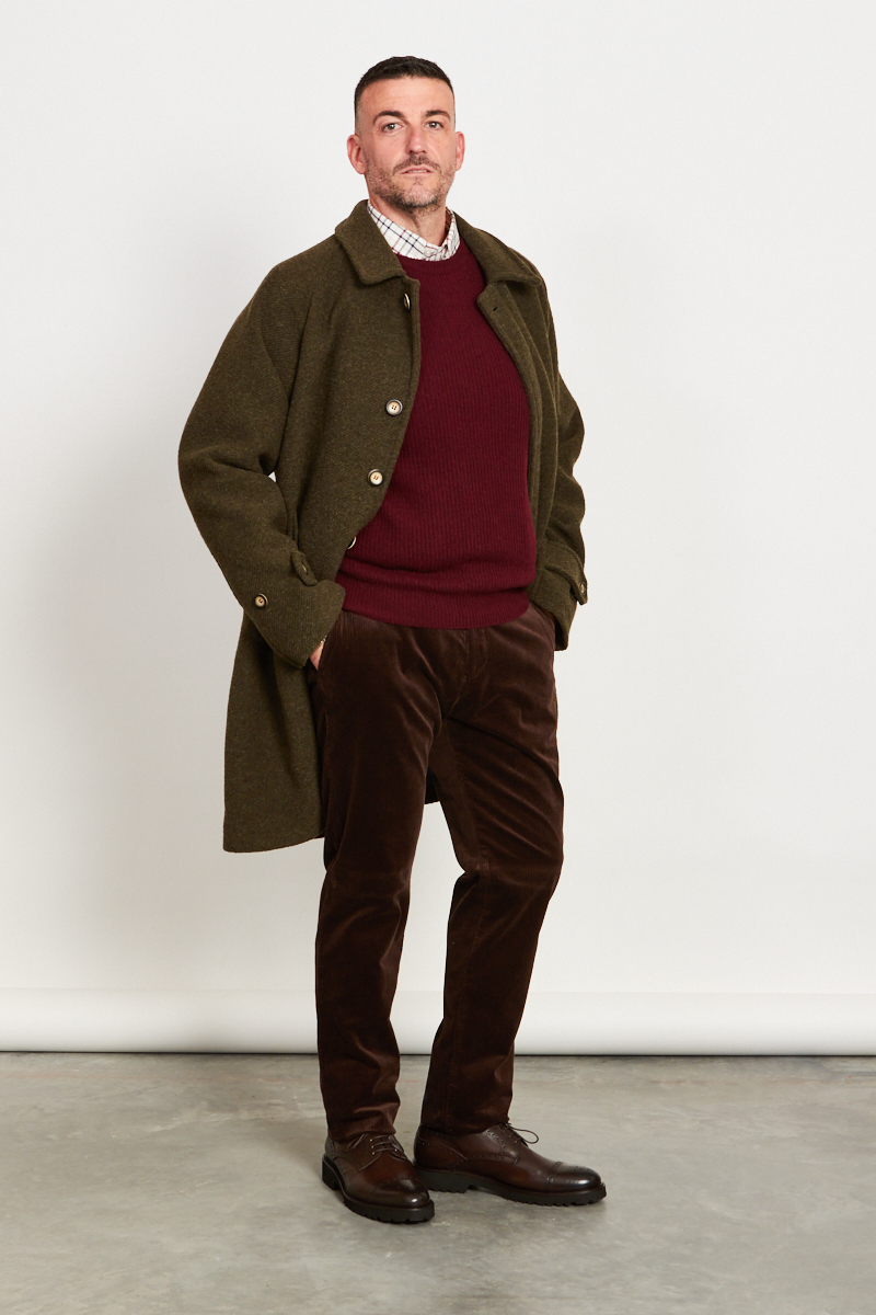 Home » Lookbooks » Lookbook uomo » Look urbano che combina tradizione e modernità con pantaloni in velluto a coste e cappotto misto lana Mentore